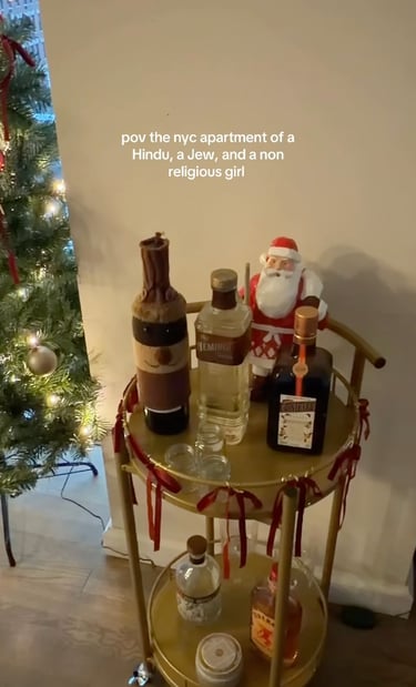 I started thinking about the question again when I was working on an activation with South Asian influencers and saw a reel where one creator showed off her apartment – inhabited by a Hindu, a Jew, and an Atheist – that was heavily adorned with Christmas decorations. An 8-foot tree, stockings on the TV stand, a mini Santa Clause, red bows on furniture; it looked like a luxury unit from a trendy neighborhood in the North Pole.